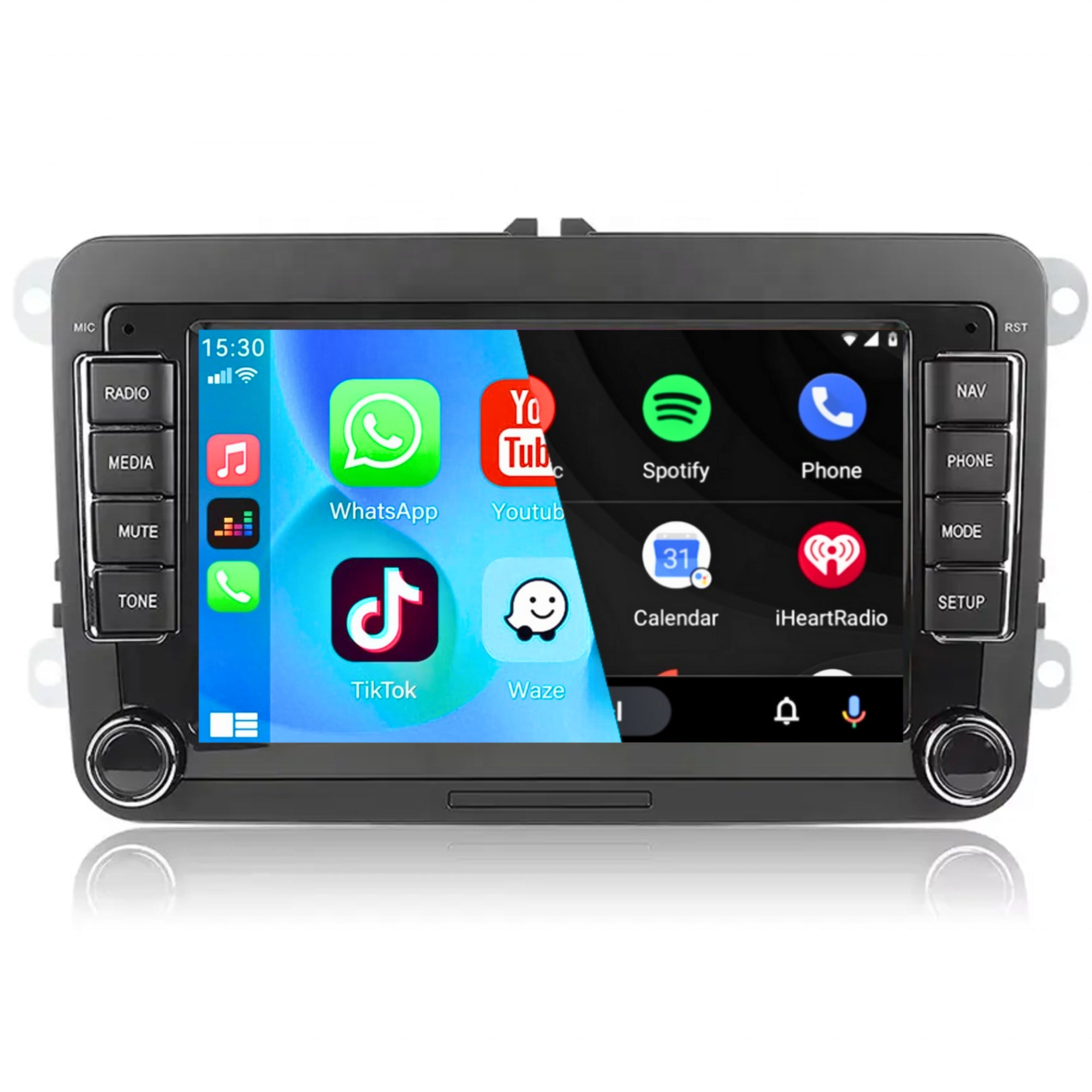 - Ondersteuning: CarPlay & Android Auto, draadloos of bekabeld